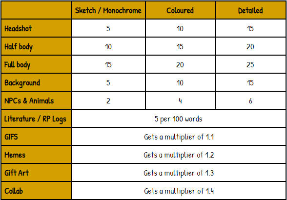 Currency is earned by submitting art to the deviantART gallery or the art bank in Discord