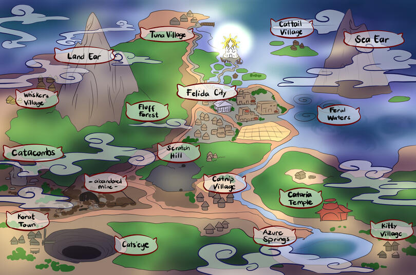There were many stories as of how Terra Cataria came to be. A variety of stories state that before Terra Cataria was just a cat-head shaped planet, it used to be the head of the cosmic cat deity that endlessly traversed the vast universe.THE RULE OF THE LAND: A TALE OF LIGHT AND DARK